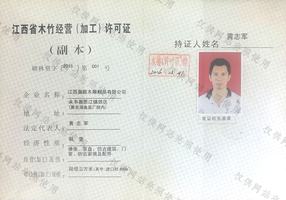 江西省木竹经营(加工)许可证